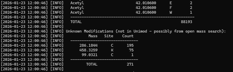 If the BLIB SL was created from an open mass search or uses modifications not included in Unimod, the converter will report these as masses: