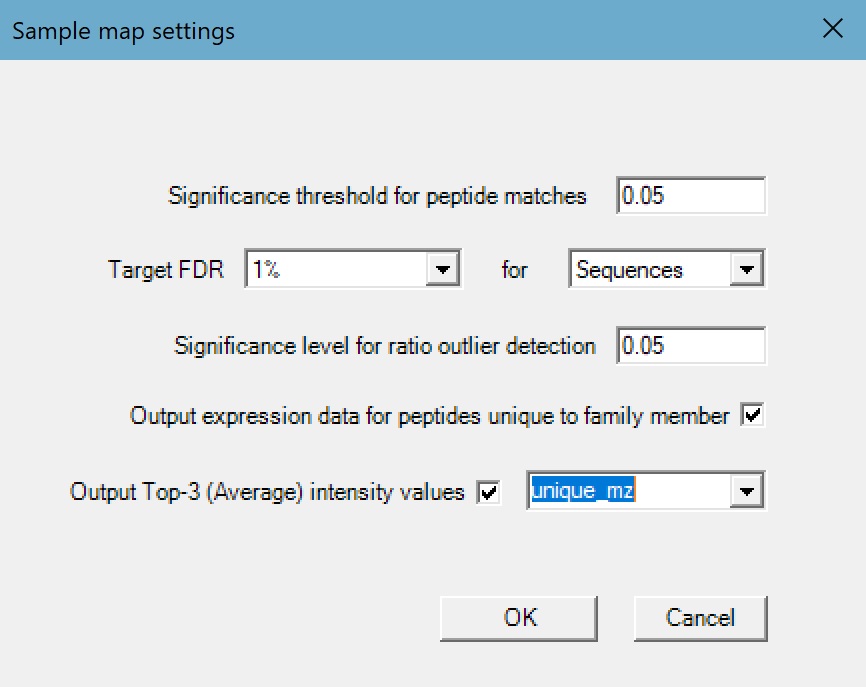 We then changed the settings so the generated report targeted a 1% sequence FDR in order to match the Mascot report, and to output the top-3 intensity value and expression data for peptides unique to a protein family member. With these settings enabled, the generated report contains the total and top-3 intensity values for each protein calculated using all assigned peptide matches, and again using only the peptides uniquely assigned to a protein. We can also choose between three options for the top-3 calculation: